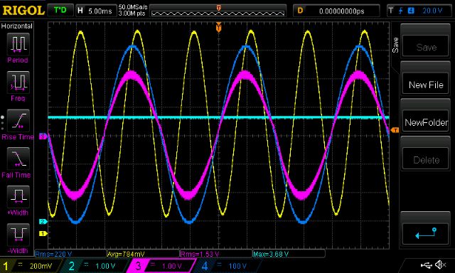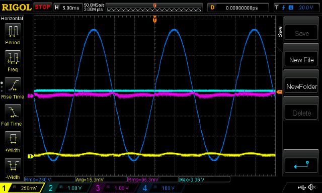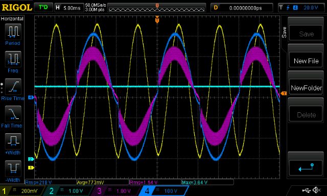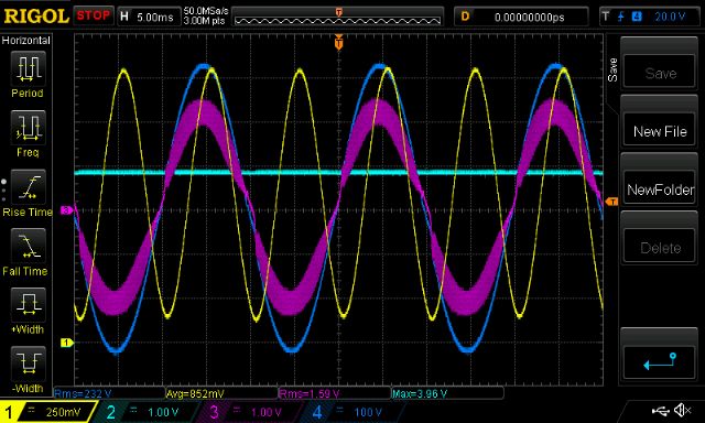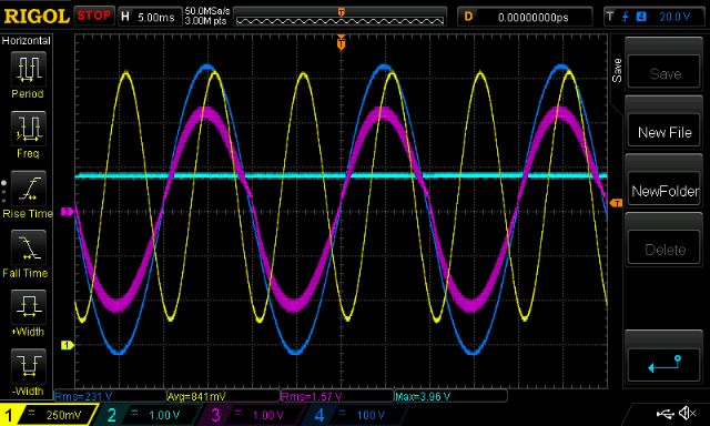 The oscilloscope calculates the RMS voltage of this which I use later.