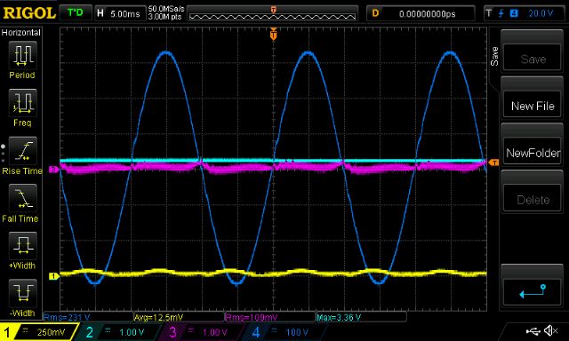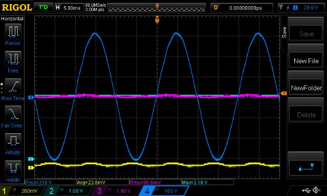 (yellow is DC bus current, pink is primary current, blue is AC out, light blue PWM%)