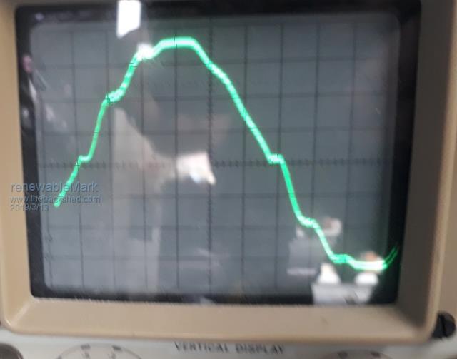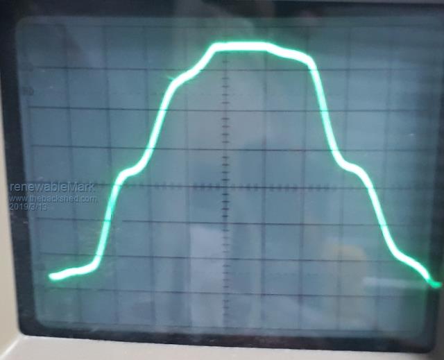 When the inverter was previously running fine it probably had this crap sine wave too, as I never checked it with the air con going. The air con appears to run fine, exactly the same as it does on mains power, so unless you checked with a cro you just wouldn't know. I also put the mains back on and tested the sine with the air con going and not going, sine was identical.