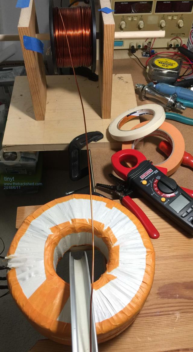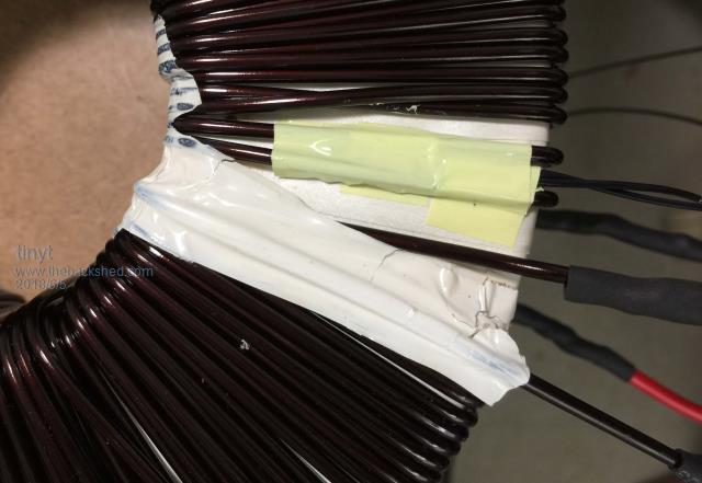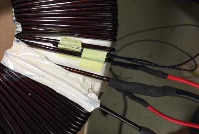 I still have not added the 230v (2x 115v) winding as I need to straighten the harvested wires. Meantime I added a 10K ohms thermistor bead. ![]() ![]() It should give a more accurate toroid temperature I hope. |