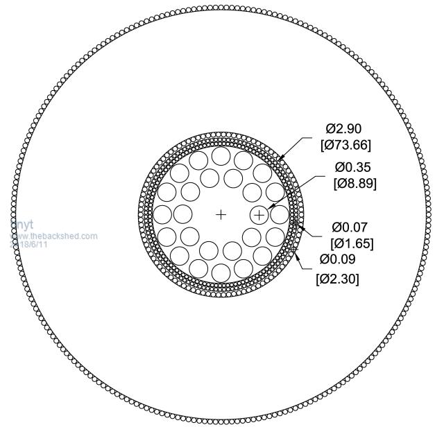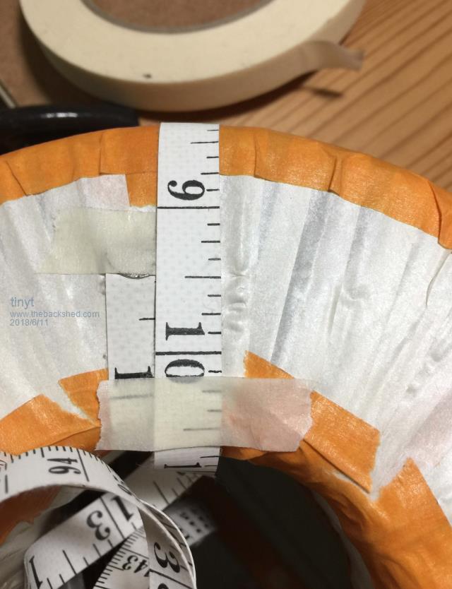 Added more awg #10 wires. Drilled new holes for the battery wires with the top counter sunk to prevent shorting the top and bottom layers during soldering. Yellow wires for tranformer connections are now 9 and the battery wires are now 12 for each polarity. So the equivalent cross section areas are: Yellow transformer connections: 5.26 mm x 9 = 47.34 sq. mm or 7.7 mm dia. (between awg #1 and #0) Battery connections each polarity: 5.26 x 12 = 63.12 sq. mm or 8.96 mm dia. (between awg #0 and #00) I re-used the white insulating tape that I un-wound earlier and used my wife's flexible measuring tape to approximate how long each turn of the first layer will be. ![]() The toroid ID for the added first layer is about 2.9 inches (73.66 mm). I sketched in autocad the layers and found out that if I re-use the awg #12 that I un-wound earlier, the primary will not fit. Since I have awg #14 left over from an earlier project, maybe I can use it. From the wire table, this makes the equivalent cross section area of the 230vac wire to be 4.17 + 2.08 = 6.25 sq. mm. The primary should have 9 x 6.25 = 56.25 sq. mm or 8.46 mm. dia. (0.333 inch) I re-drew the sketch with the new dimensions and looks like everything will fit (I hope). ![]() So I am now loading on the bike tire rim the awg #14 wire. I might have to buy more for the second 115vac winding. ![]() |