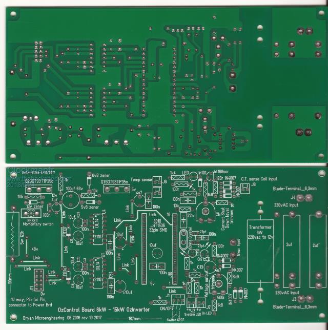 Gaspo, wiseguy, For clarity, and for others following this thread but may not fully understand. Regards whats on the 8010 sub board pin out, here is the OzControl board rev12bb. This board originates from Oztules original simple design layout 2015/16 period. Since then there may be changes around the peripheries of the board, but the 8010 sub board pin out has not really changed. I believe there are a couple of hundred boards out there with this pin layout. For clarity...... (Photos are limited to 1.5m) ![]() ![]() ![]() Everything is possible, just give me time. 3 HughP's 3.7m Wind T's (14 years). 5kW PV on 3 Trackers, (10 yrs). 21kW PV AC coupled SH GTI's. OzInverter created Grid. 1300ah 48v. |
