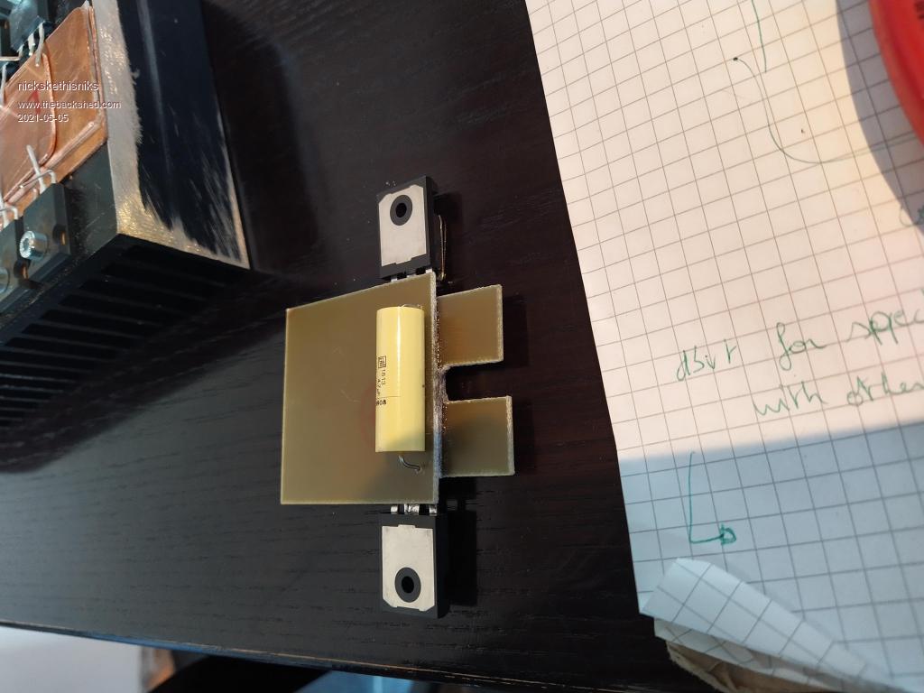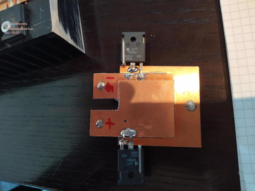 Its only a one ounce board, but source and drain connections are reinforced with solder lugs, so that if it ever blows up the pcb tracks are just about indestructible