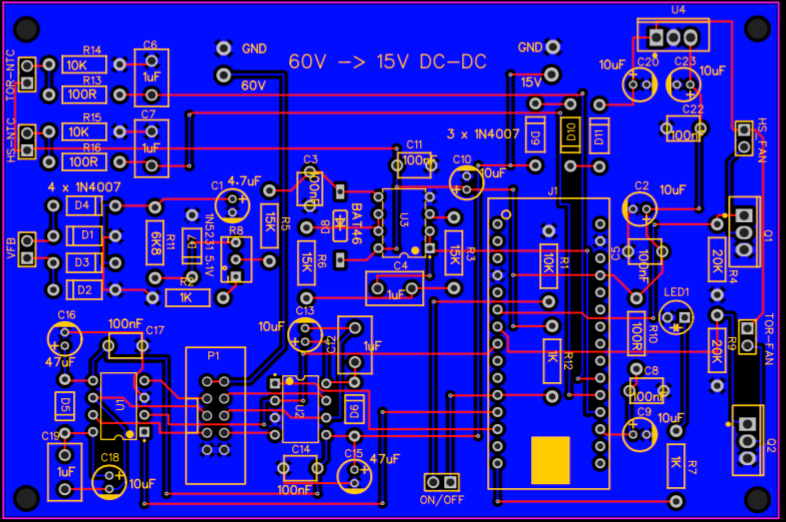 Does anyone have the complete pcb layout from the madinverter power pcb? I would like to think about how it could be made better. I didn't say it is the way to go for starters, but probably the best choice of what you can get at the moment if you want to start. I think there were no other designs open source that well documented, besides the ozzinverter.