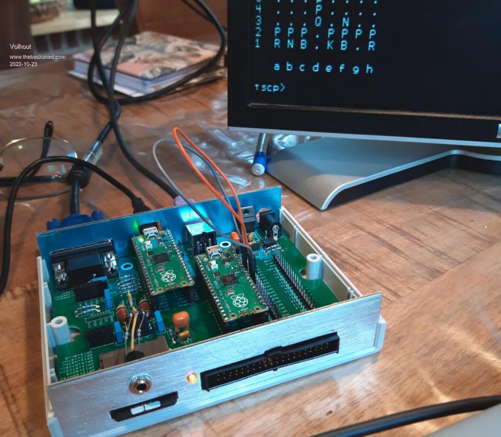 The second pico runs Peters compiled TSCP (2 posts back). Its useds UART at GP0/GP1, and is wired to the UART on the first pico at GP4/GP5. Since this TSCP pico is very sensitive to typing errors I pre-process every command in the first pico.