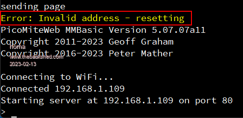 Forum Index : Microcontroller and PC projects : PicoMiteWeb firmware for the Pico W - now making real progress