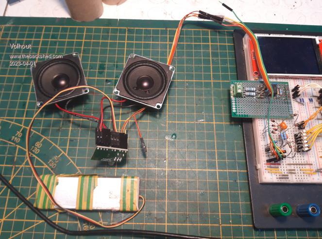 G'day Tom, sorry if this is adding to the overload... Can I suggest trying the larger speaker you have, but cut a hole in a piece of cardboard or cardboard box and mount it through it, doesn't have to be anything fancy I am using the 40mm version of the speaker you have and without a baffle there is not a lot of volume, more noise.By the time you have decent volume, the amp is way into overload and adding noises / buzzing of its own Can I also suggest trying TRIANGLE "t" instead of SINE "s" in play sound, it adds a lot of harmonics and through a small speaker sounds a lot louder. (richer?) Hope this helps. Also now have Vivaldi's "Spring" playing and through the 6" speakers I have out here it sounds nice, that piece of software of yours is very good Regards, Lyle. |