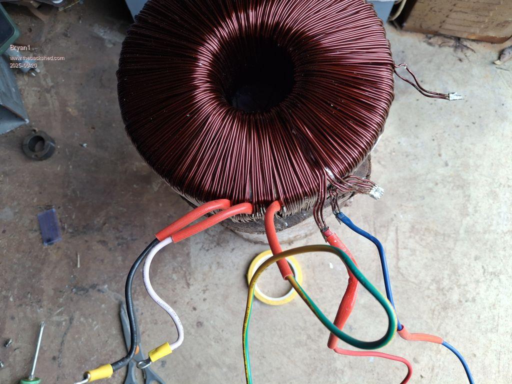 Well after a few beers here is the transcript Here is a detailed procedure to use the existing 230V inner winding and turn it into a 250V secondary winding for your inverter. At first glance it may seem too complicated but in reality the process is actually very simple to understand and follow and certainly worth the effort to obtain the best performance out of your inverter transformer. TEST PROCEDURE: 1. Remove the 250V outer winding insulation and wire from the transformer and carefully save it on a spool for later use. Try to avoid any sharp bends, kinks or twists in the wire while unwinding from the core and also when winding it back on a spool to minimise damage to the enamel insulation. The winding will consist of several strands of wire so you will need to save each of these on separate spools for easier access during the rewind process. The wires may appear twisted together on the core but they are just tightly packed by machine winding so you will need to identify which one is easiest to remove first and the next one will be easier. That is how I removed my outer winding which had 4x 2.05mm wires. Yes, it's a bit tedious but worth the effort. From memory, your cores might be wound using 1.6mm wire which should be easier to unwind and save. When all the wires have been removed from the 250V winding there will be another insulation layer below it which you want to keep in place with minimal disturbance and wind about 15-20 turns over it to make up a new 250V secondary winding for inverter use. This is covered in detail further down the page but for now just complete the unwinding process. The easiest way to do this is to cut a keyhole shaped slot in a carpet covered chipboard or plywood square board temporarily secured to a bench using clamps. The keyhole slot opens out to the edge of the board towards your working position/seat and allows virtually continuous unwinding access around the core by simply rotating the core on the board a few degrees at a time. You will find a few old threads on the forum covering this process. 2. When the above step is completed add a temporary 10 turns winding to the transformer and leave a few extra meters unwound for later use. Make sure the test winding follows the same direction as the existing 230V winding. If wound in the opposite direction, its voltage will subtract rather than add to the total winding voltage measured in Step 8 below. 3. Connect the 230V inner winding to an AC power source. Your old inverter would be a good option if it is still working as it may provide a more stable voltage than the mains supply. 4. Measure the voltage on the 230V winding and use a Clamp Meter to measure the idle current of the transformer. Record the values for future reference. 5. Measure the voltage on the 10 turns temporary winding then divide the value by 10 to calculate the volts/turn value for your core and record the value. 6. Divide 20 by the volts/turn value to calculate the number of turns you will need to add to the 230V winding to make it into a 250V secondary winding for your inverter. This will give you some headroom at the inverter operating voltage i.e. 230VAC and will also reduce the idle current, which is important for battery operation. 7. Connect the start of the temporary 10 turn winding wire to the end of the 230V winding and using the loose end of the wire start winding additional turns to reach the total number required for the 250V secondary winding (calculated in Step 6). Assuming your volts/turn value is 1.25V then the calculation will be 20/1.25 = 16 turns minus the 10 turns already wound = 6 additional turns required for the temporary winding. 8. Reconnect the full winding (the 230V winding in series with the now 20V temporary winding) to the AC power source and check the voltage on the winding is close to the value measured at step 4. Now measure the idle current using a Clamp Meter and compare it with the previously recorded value to check if it is lower and record it. 9. Multiply the voltage on the winding by the current to determine if the transformer idle power is within the acceptable range, which should be around 15W but still OK up to 20W. If still too high, add 1 or 2 more turns and repeat the process to determine a practical compromise between the number of turns and idle current. Note the relationship is not linear and adding more turns will increasingly be less effective in reducing the idle current but will also begin restricting the core magnetising power below the optimum level. 10. Once the optimum number of additional turns required for the 230V winding is determined, record the value and remove the temporary winding from the core. Now measure the length of the temporary winding to cut the enamelled wire required for the 250V winding. REWINDING PROCEDURE: 1. Causing as little disturbance as possible, carefully cut through the insulation tape where the stranded terminal wire comes out of the transformer from the outer end of the 230V winding to expose and separate the individual strands of parallel enamelled copper wire wound on the core. You will need to splice and insulate each wire strand separately before you can start winding the extra turns on the core. Once all the splices are completed and individually insulated you will need to fold the ends of the cut insulation tape back over the splices to cover them and insulate the disturbed section using heat resistant 15-20mm Polyimide/Kapton adhesive tape such as found here: ebay.com.au/itm/253133152980 aliexpress.com/item/1005008628726410.html discountpackagingwarehouse.com.au/products/kapton-tape-high-temperature-heat-resistant-polyimide 2. Slide a 6-8cm length of heatshrink tube over the end of each wire strand before they are spliced to the 230V winding strands. 3. Carefully strip 15-20mm of enamel from the ends of both the 230V winding wires and the saved winding wires from the spool and thoroughly clean and tin them with 60/40 solder. 4. If available, yo