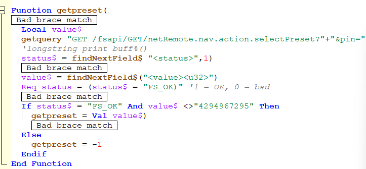 Try this version. while entering, the code tests the character before the cursor and then the character after the cursor. When you leave a line, it tests for any bad matches of () but not the other braces. A warning is displayed if required. This warning will stay until you fix the bad match and leave the line again. Format also annotates lines with bad matches. ![]() MMEdit5beta.zip Jim VK7JH MMedit |