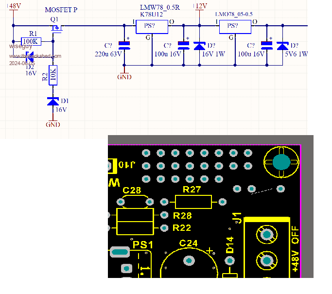I have been brewing quite a few ideas which include an active strong pull down on the resevoir caps once the inverter is switched off. That could extend to a strong pull down on the 12V rail when turned off or even just becoming active when the main capacitors start to droop say below 30V. I personally dont want to give a knee jerk response on how best/simplest to deal with this. Even a series pass FET between the 48V input of the card to the 12V regulator that only turns on with > 30V. I also thought about extra load on the 5V regulator it might work but wastes a bit of power, and its counterintuitive killing the input below say 30V seems like a sound approach. Still thinking of how to tackle it. I've now taken my tablet sorry for the earlier terse response ![]() Edited 2024-06-05 18:58 by wiseguy If at first you dont succeed, I suggest you avoid sky diving.... Cheers Mike |
