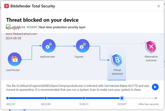 The first message I got was from Bitdefender the screen shot is below.