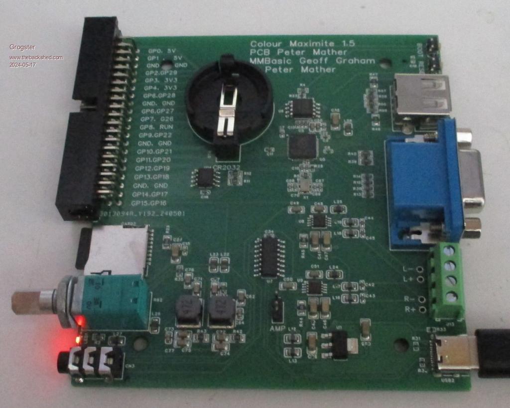 Grogster, It is designed to go in a box, so this may be a product for you to sell also. Like the CMM2's. I noticed you have the RTC on this board, which is not on your CMM2 builds. Volhout PicomiteVGA PETSCII ROBOTS |