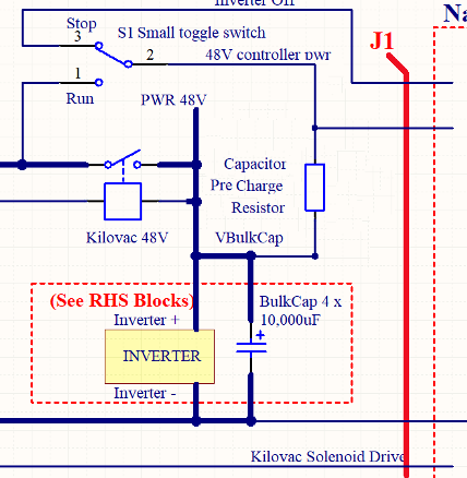 Note: I use a 30Ω resistor and the Kilovac positive "MUST" connect to the the Cap Bank, IE. After the precharge resistor.