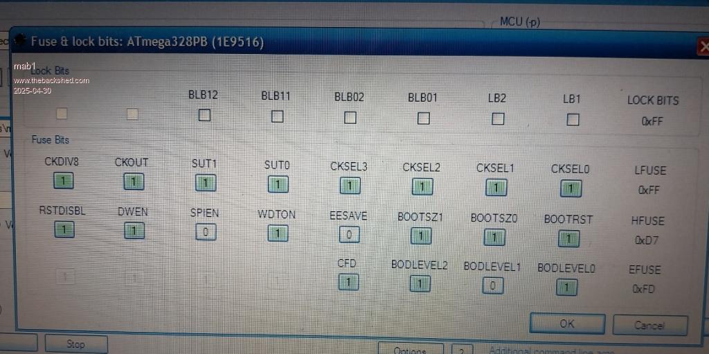 So I plugged in the 2nd nano we've been trying to set the fuses on in terminal on the imac. Read the fuses and clicked the bit selector:-