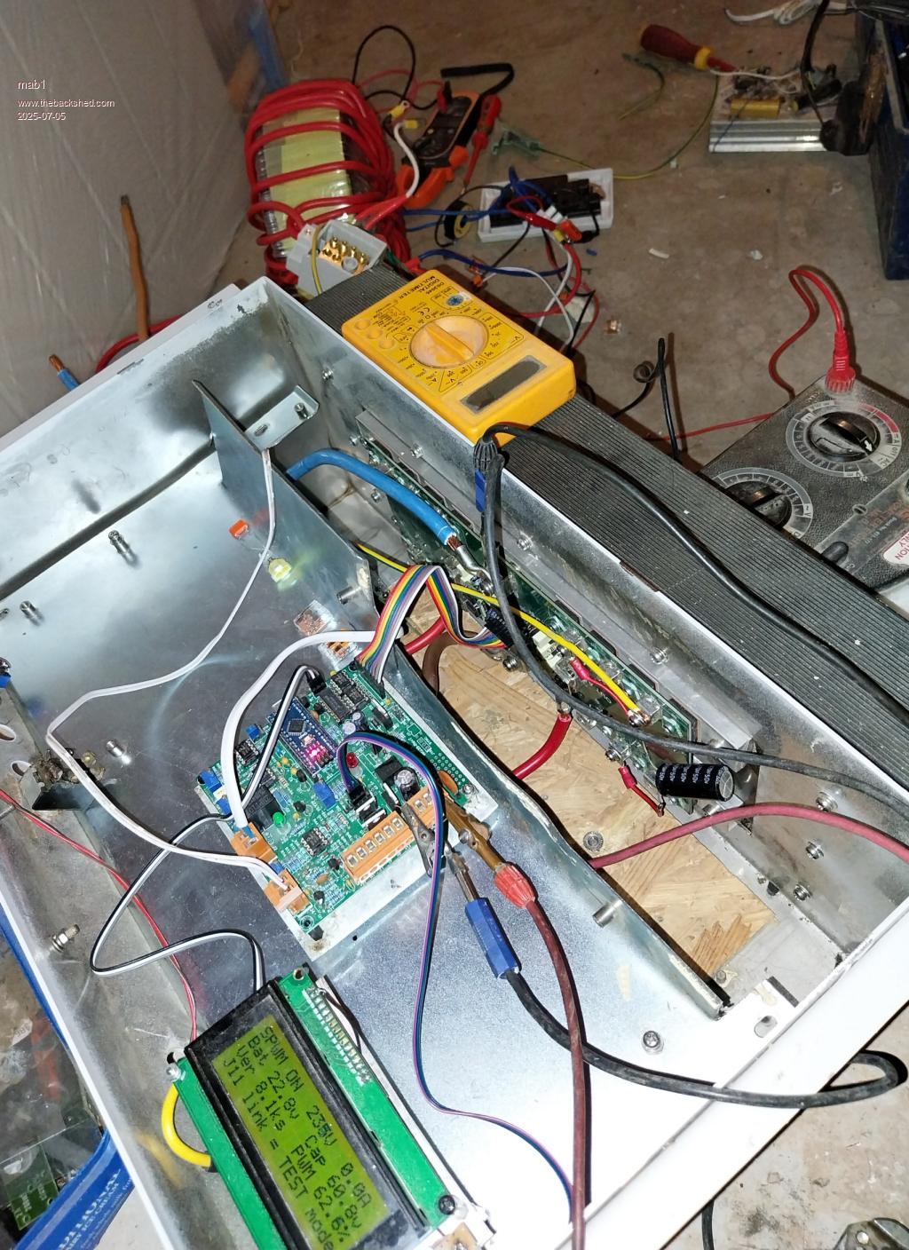 when i turned the inverter off, the brain board (WG39) seemed to be getting enough power from the capacitor bank to cause the nano and display to power up momentarily and keep cycling on and off until it fades to a flickering of the leds (i have installed Wiseguys 5v reg with monitor function, so must be that which cycles on and off? or the kilovac economiser cct?).