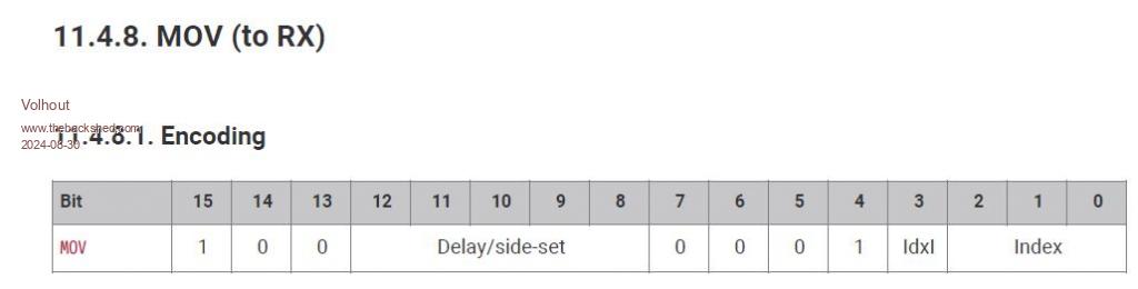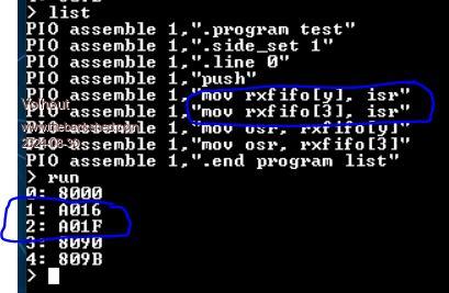 Hi Peter, I think the "mov rxfifo[], isr" does not work correct. When the datasheet is correct it should translate to something starting with &h80xx Volhout PicomiteVGA PETSCII ROBOTS |
