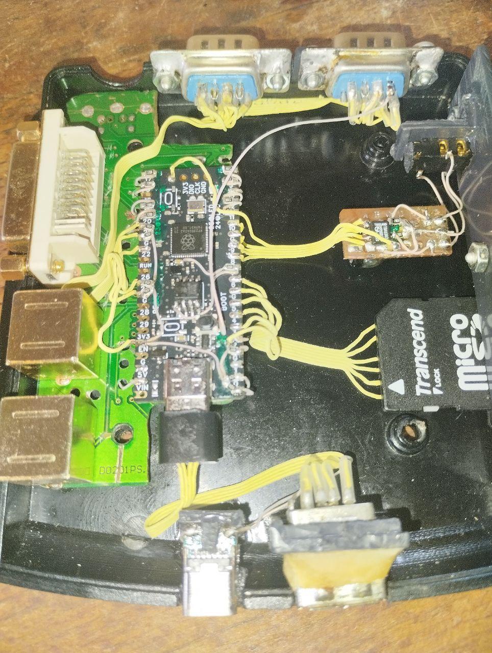 USB keyboard and some gamepads work. Wii Classic Conroller: I2C0 SDA -- GP20 i2C0 SCL -- GP21 NES Controller 1: NES Controller 2: NES1_CLK -- GP0 NES2_CLK -- GP3 NES1_LAT -- GP1 NES2_LAT -- GP4 NES1_DATA -- GP2 NES2_DATA -- GP5 Try connecting a USB keyboard to the Pico2 connector itself, or there are pads TP2 - USB DM, TP3 - USB DP on the back side to which you can solder a large USB Type-A connector for the keyboard. In this case, 5V power must be supplied to pin 40 of the Pico2 module itself. Menu Usage Gamepad buttons: UP/DOWN: Next/previous item in the menu. LEFT/RIGHT: next/previous page. A (Circle): Open folder/flash and start game. B (X): Back to parent folder. START: Starts game currently loaded in flash. The colors in the menu can be changed and saved: Select + Up/Down changes the foreground color. Select + Left/Right changes the background color. Select + A saves the colors. Screen will flicker when saved. Select + B resets the colors to default. (Black on white) When using an USB-Keyboard: Cursor keys: Up, Down, left, right Z: Back to parent folder X: Open Folder/flash and start a game S: Starts game currently loaded in flash. A: acts as the select button. Emulator (in game) Gamepad buttons: SELECT + START, Xbox button: Resets back to the SD Card menu. Game saves are saved to the SD card. SELECT + UP/SELECT + DOWN: switches screen modes. SELECT + A/B: toggle rapid-fire. START + A : Toggle framerate display When using a Genesis Mini controller, press C for SELECT. When using an USB-Keyboard Cursor keys: up, down, left, right A: Select S: Start Z: B X: A Edited 2025-02-08 06:40 by javavi |