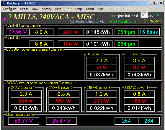 This is a main screen shot with 2 windmills, RE system and HOUSE loading logging.