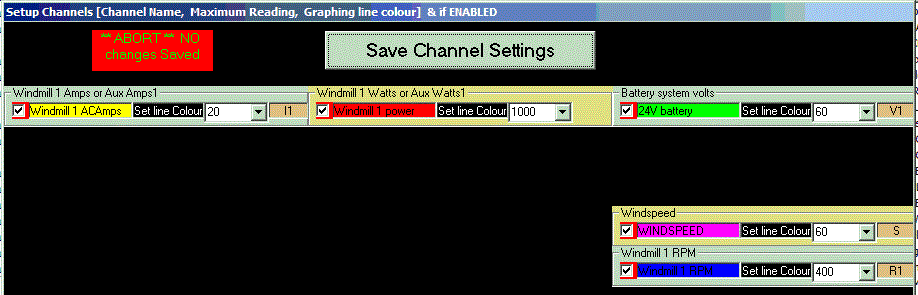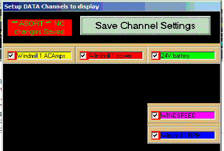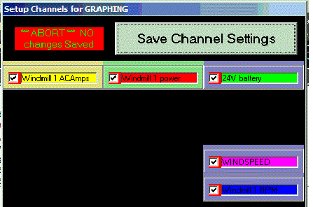 Screen Real estate becomes a problem when many data channels are to be concurrently viewed. I have redesigned the data fields to allow a single field to be used to display up to 3 different readings, depending on how the pointer is used. With the pointer say over the graph, then the readings reflect the data for that particular time for each channel. The maximum or minimum for the graphing window is available by clicking on the desired parameter output window. This has allowed me to view up to graph and view 12 individual channels with the same size window. A zoomed in portion of the graph can be viewed, and the maximum and minimums are recalculated, as well as the WH for the time period. I have tried to allow the user as much cutomizing as possible. Channel names and colours in all setup screens and graphing windows reflect user settings. The main display is fixed, as certain user colours are harder to view. The application will make all the configuration and help files and folders when first run. VB run files are still required and are the same as those needed by piclog. The application allows multiple windows to be opened and moved to suit personal prefernces for placement on the desktop. This has become a mammoth individual project and I hope to soon have at least the DEMO available. Gordon. become more energy aware |