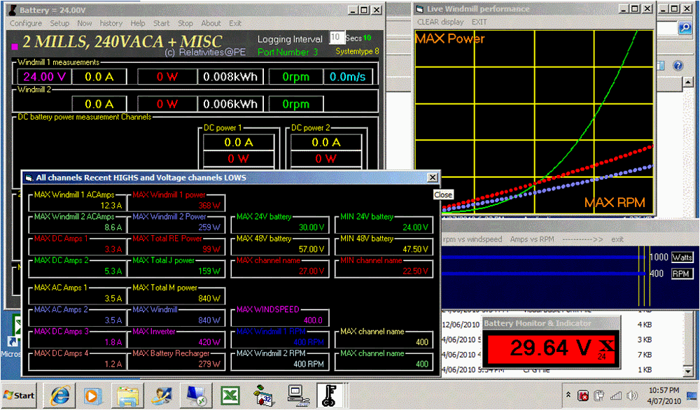 I really like the Power V RPM you can get real time look at the wind gen. All I can say is well done, I take my hat off to you Gordon. Andrew P.S Gordon I would love a copy to use with my new wind gen from Phill and the Data logger from Pete(downwind) *Note to self 1. Make it thick 2.Make it heavy. 3.Make it stronger than it should be. 4. Don't rush the first job as the second job will cost more and take mor |