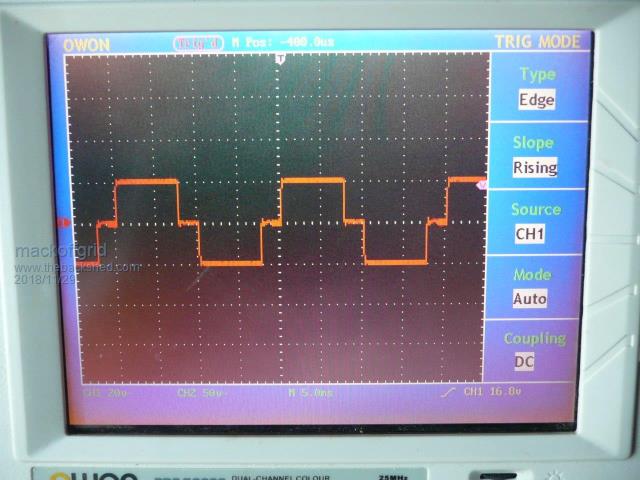 Hi Tony I'm very Pleased - I run up the transformer today ; No problem at all. I incorporated a 2 button inputs, Start and Stop, that are latching to help in the power up and de-powering, made my life much easier, as I have no spare FETs to blow up. Ordered 100 lot last week :-) Here is a photo of the transformer output. That 20v represents 219v which is pretty right since the test battery voltage is about 1v too low. ![]() Im not bothering with load test yet, I'll build the 2nd transformer, by then I'll have more fets. |
