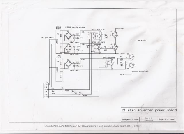 The scheme used for the EG8010 inverters pwm drive annoys me. It toggles the LHS of the primary between zero & VBatt every half cycle and feeds PWM & inverse PWM in synchronism to make sinewaves. Why not just hold the LHS lower fet at zero and drive the RHS to max and back, them hold the RHS lower FET at zero and PWM the LHS to max and back. The drive is then symmetrical and we dont have a 50V transition occurring on the FETs & between primary and secondary every half cycle. Mains voltage sensing by the EG8010 will still work ok.