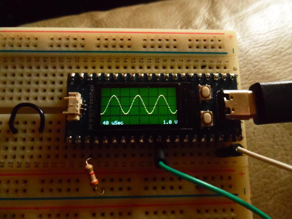 Ooh - that looks good! I don't have a signal generator, and could only use the PWM test signal. I set the cursor at 3/4 the way to the bottom to show DC signals (the cursor is at 0VDC). I have a 3PDT switch on the way; I will use two poles to switch the R/C network in and out to center the signal, and the 3rd pole to indicate to the program whether this is an AC or a DC signal, and move the cursor appropriately. I see the resistor in your photo - is that to do current limiting between the test signal output on pin 24 and the signal input on 31? You're also using an older version of my code - I don't see the Trigger symbol ("/", "\", "-") in the middle. My newest version is on my GitHub page, linked here. Please - if I've used your ideas, but haven't credited you in the comments, please let me know and I'll fix it. I'm in early discussions to write a magazine article about MMBasic, PicoMite firmware, the Back Shed Forum, in the context of this project. Live in the Future. It's Just Starting Now! |