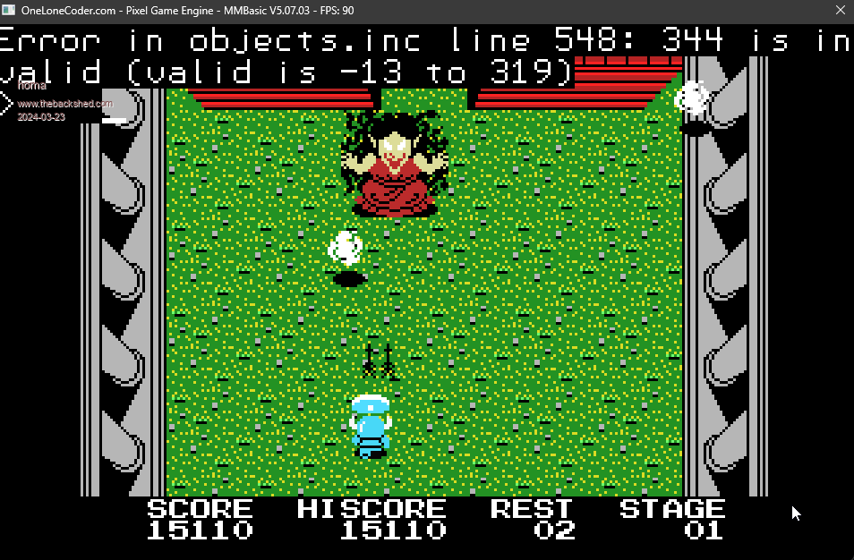 That's the way it normally works. Another crash. ![]() I have not been able to replicate the sprite like artefacts yet. Noticed that the arrows that those other knight things are firing are pointing the wrong way now, I don't think they were before. MMBasic reporting that it has seen the controller is annoying because you have to restart the game. I'll report that to Peter in the other post. Maybe an MM.INFO flag may be better? Bill Keep safe. Live long and prosper. |
