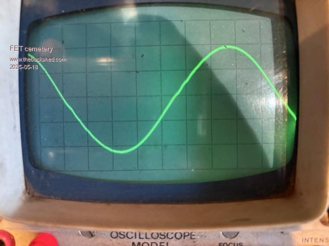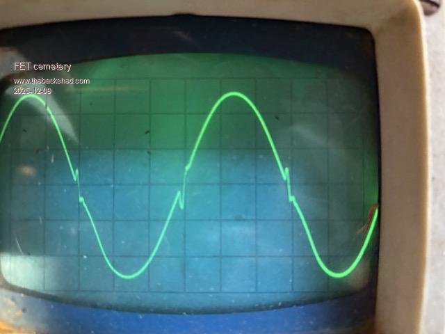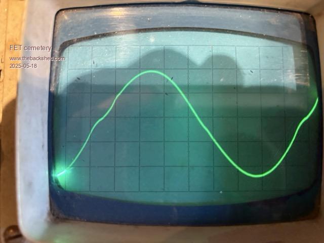 Couldn't help myself, I hooked it up to the house battery with a 32A breaker on the DC side and ran a 1kW heater for 20 minutes or so, bit of a hum from the transformer and the waveform wasn't as pretty but this was using the power board with the big resistors and some fairly untidy wiring that could easily have been picking up switching noise.