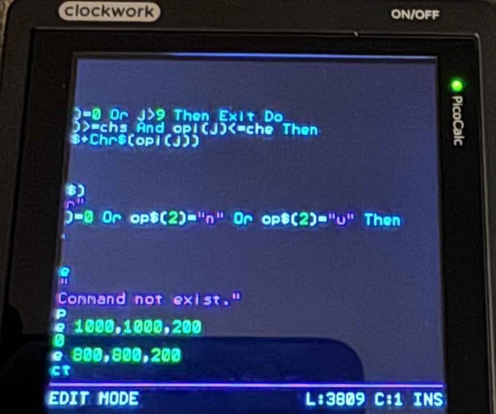 @matherp Peter! After writing a long line in Picocalc and press Enter I got the attached screen. From here I can’t go back to the beginning of the lines. Only if I save and reopen editor. Or pressing shift+Tab (home) twice to go to the top. G@bor ![]() Edited 2026-04-20 06:11 by terekgabor |