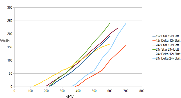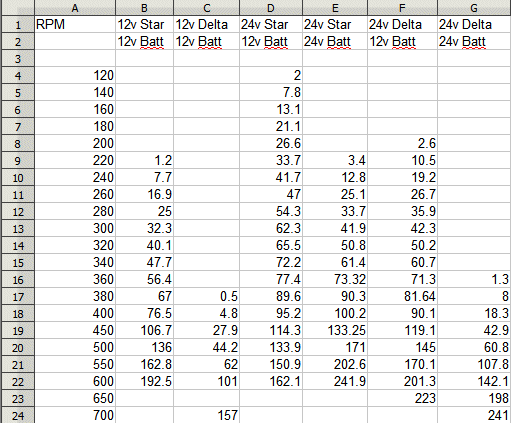 I think it would work best as a 24v alternator, that is 24v Star 24v Battery, with a high speed set of blades. It makes 170 watts at 500 RPM, and you could see closer to 250 or more in strong winds. Glenn The best time to plant a tree was twenty years ago, the second best time is right now. JAQ |