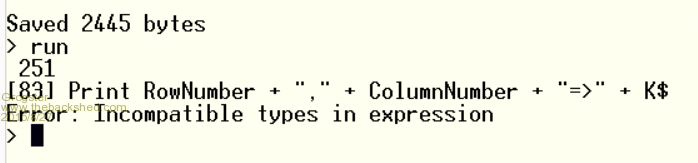 PRINT RowNumber + "," + ColumnNumber + "=>" + K$