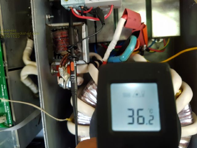 Finally, some success to report, been chasing why the waveform was distorted. I found 1 pad on a MOSFET gate had a partial solder bridge leaving a gap of about 0.5mm. Still not as good as I would like as you will see below but it is running. Here is how it looks now ![]() As you will see I have changed the primary to 70mm square welding wire which made no difference, I was chasing the cause of bad waveform which is why it was changed. Here it is under load ![]() Started out with no fans and ran for over 20 minutes before I temporarily got the 2 fans in the bottom of the case running. Here is temperatures of the FETs and Toroid before I started the fans. ![]() ![]() There are only 10 types of people in the world: those who understand binary, and those who don't. |