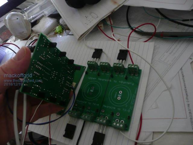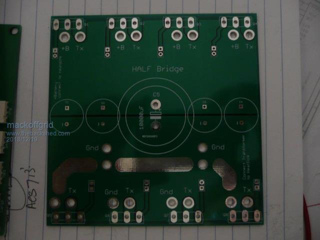 Hi Tony I have got my new PCB's. I got them through JLCPCB and they were great. At $27 AUD inc DHL, paid for them on a Tuesday morning and DHL delivered them Friday that week ! Its all looking good so far, just waiting to clear some room to do a real test with 3 transformers. ![]() Clock Board and a Fullbridge Board. (2 Fets per quadrant) I have Half Bridge Boards also (4 Fets per quadrant ) ![]() The Driver board plugs into the relevant FET Bridge board. Removing all components from the Bridge boards allows for full planes of copper for +Batt, GND, and Transformer Legs. I have done the calculations and believe the PCB should be good for a RMS current of 20 to 30 Amps per FET. Driver Board and Full Bridge pcb. ![]() I have done the driver boards so that a driver board can drive additional driver boards. In this way my large transformer can be driven from 2 half-bridge boards and a full-bridge board to provide 6 fets per quadrant. All subsequent transformer should be able to be driven off just one full bridge board each (over kill for the 2 smallest). The Full-Bridge drivers drive the FETS from the HP3120 but will be buffered on the Half-Bridge boards with TC4452. I updated the Clock Board to take the 2 Meg eprom. Instead of using an ADC like you have, and you're implementation was very appealing, I'm still going for a processor approach, so far it'll be a nano but that could change. The main reason is flexibility. When I re-did my software for the eprom maps, I was amazed at the level of regulation this afforded me. My nom. 24V lithium bank does not vary very much, I take it up to 28v and it lives around 26.5 to 27v during the day and low 26's overnight. Given this I decided to split the eprom into 2, so 128 maps of 1k maps for increments of 25mv of battery volts. Far more than I need. The other half of eprom is dedicated to Hot water Service. My idea is that I can take information from my solar charge controller containing estimated available un-used solar power and for the inverter to deliver that available power to the Hot Water Service. As this is in an off-grid situation, this will be a big bonus to soak up all the lost energy. I used 127 maps from 100% power down to 10% power. My plan was to make this dual purpose - I could have a contactor change the output to a dedicated output just for HWS and go into HWS mode. This suits me well because I have intermittent use for the inverter to run various water pumps that I control manually (hour long runs) and can easily manage usage between HWS and proper inverter function. BTW I have a Latronics 3kW to run the cabin - and yes when we eventually build the house it will be 48 volt. (its attractive to go high voltage but for safety I'll sit with nom 48v) Anyhow, thats all for now |