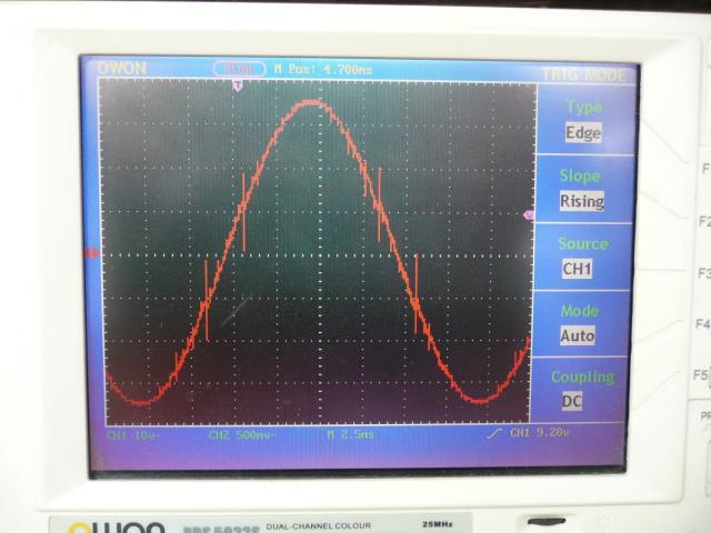 Merry Christmas, I hope everyone had a pleasant day. I got the inverter all wired minus the tiny transformer. No smoke escaped, no FETs were harmed :-) I did find out what the output looks like when the Medium Transform is the wrong polarity - you know I checked all the polarities twice - sheesh. Here's the output of the 3 transformer inverter (I'll now wind the 4th transformer) The Cro is connected to the output 1Meg / 100k divider. ![]() When the Inverter is running it's load increases by only 10 Watts. |