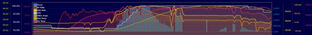 Yellow lines are battery volts and Brown/orange is battery current. The dip before going to Float was a cloud.
