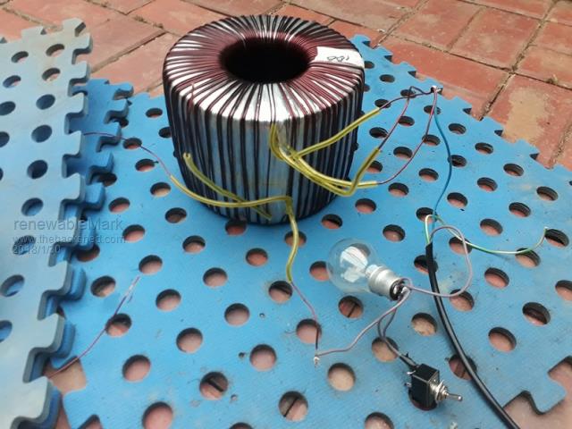 ![]() Here is the test rig I made up from Oz's instructions. Madness had a great suggestion to leave an extra metre of copper on the end, just in case the counts were wrong and you would easily wind on another turn. The test is to connect the start ends together and place a nuetral wire on that. I cut up an old power lead from something, on the active line I soldered on an old style filament globe as a soft start, the switch is to short out the globe, effectively eliminating it from the circuit. Basically as per reply 3 on here After I did the test and it all worked out well, just to be sure I wound on another turn,(with that extra metre of wire) and as expected the voltage rose around 2v, so that double confirmed my turn count was correct. I have three windings on now and one more to do. I thought I only had to do three windings and got a bit sloppy with the spacing on the last wind, so there ended up having a gap of about 1.5cm between the start and finish ends, shouldn't matter too much. Cheers Caveman Mark Off grid eastern Melb |