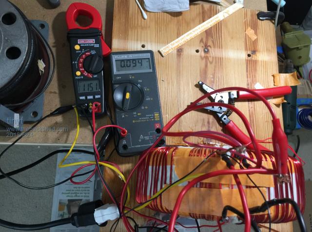 Finally got the first 115vac layer wound. It takes 118 turns to make the turns per volt the same as the half of the existing original 230vac inner layer. With 115vac applied to half the existing winding, the voltage difference vs the new layer is only 10 millivolts. Idle current is 0.093 volts or 115 x 0.093 = 10.7 watts. I wish it is lower.