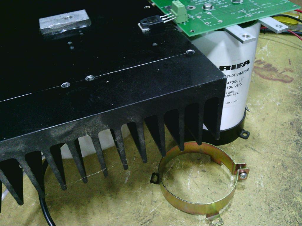The capacitor clamps may need to be located underneath the plate so you can get to the screws with the circuit board and busbars fitted.