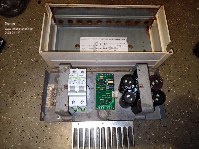 A little progress, found an old Telecom 48V power supply, will use it to house all the parts for the hot water circuit board. The capacitors will be ganged together and hopefully covered, so nothing can enter and get toasted. The on/off switch will be cut into the cover on top and the heat sink will be at the back underneath. I might even put an old analogue volt meter on the front just for something to look at.....If I can find it....it was on a bench somewhere. ![]() Cheers Aaron Off The Grid |