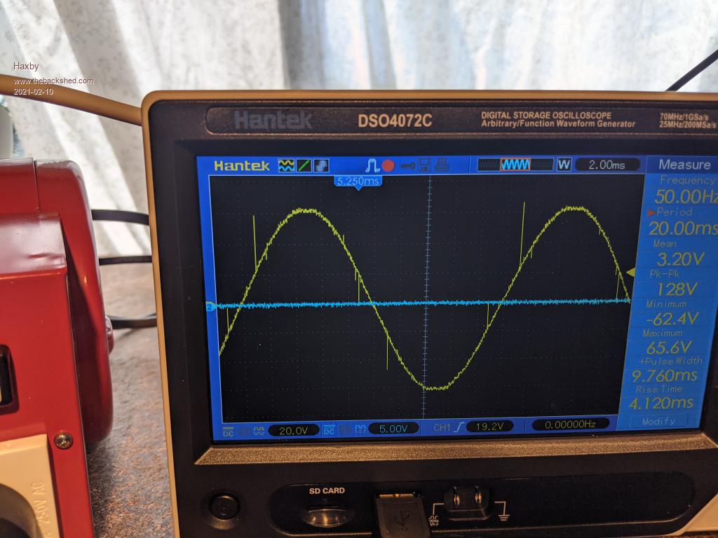 Some good news: I have connected all 4 inverters, and have run at 200v for some time without blowing any IGBTs. Aaaand, I've got 230v RMS out! I haven't yet connected a load to the output. There is still an occasional resonant hum that comes and goes from the transformers. Not sure why. It could be that I'm getting the DC input from a half wave rectifier from mains which is also at 50hz, and when it aligns with the generated 50hz it may cause a bit of step saturation. Will need to eliminate that soon with a full bridge rectifier. The problem now is that I can see some spikes in the output that correlate to the largest inverter turning on and off: ![]() They are not random. The transient pattern is always up then down on the top half wave, and down then up on the bottom half wave. Note that while the divisions say 20v, they are actually X5, so 100v per division. The transients are not on the input square wave side of the transformer, but on the load side. Should I be concerned? |