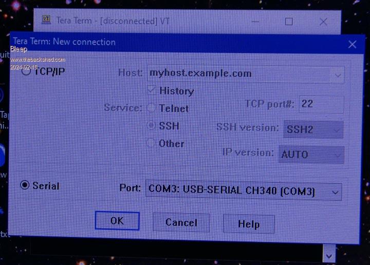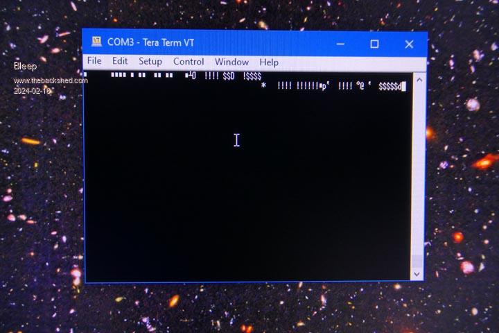 Hi Peter, Current Options. ![]() Device Manager. ![]() Tera Term Start up ![]() Tera Term Window. ![]() The Tera Term Window, stays completely blank if I try to use the PC keyboard to communicate with it. However I then plugged in a USB keyboard in and got the garbage shown, most keys do nothing, the retun key gave me the white squares, the up and down arrow keys gave me the $$$ and !!! etc. I have also tried a OPTION RESET, and get exactly the same again. Regards Kevin. |