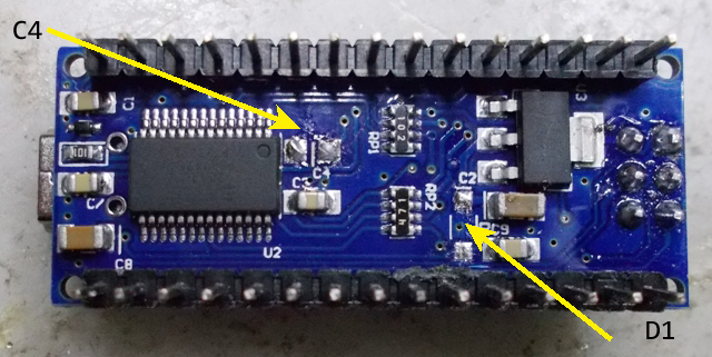 For anyone interested in freeing the Nano Micro from the control influences of the USB port. I have two, not very good photos, of a couple of Nano boards I have. The Diode removed did the following: Isolated USB +5V from the Nano board to stop 5V back feed out through the USB port, and it allowed the USB +5v from the PC to feed the Board (Nano) at all times. Removing the Diode is not a problem, we are using a small programmer board that also powers the Nano during programming via the 6 pin header. Removing the Reset Cap between the Nano Reset pin and the USB micro / USB port, disables the USB micro and anything on the USB port from resetting the Nano controller (Inverter). Again, this USB Reset control is not needed when we program the Nano board using the small programmer board. With these removed and with the automatic removal of the Boot loader when you program the Nano with a programmer board and Hex file - makes for a really robust little board. The USB port, when connected to a PC or Laptop, is used for setting up the operation parameters of the Inverter via the Setup Menu, it still functions perfectly. Board 1 with an FT232RL USB controller. ![]() Board 2 with a CH340 USB controller. ![]() The small programmer board in conjunction with the small standalone program handles HEX file uploads and more. . NANO:Inverter V 8.2ks - Linux AvrDude GUI script V4.1 |