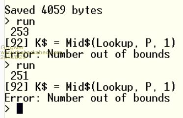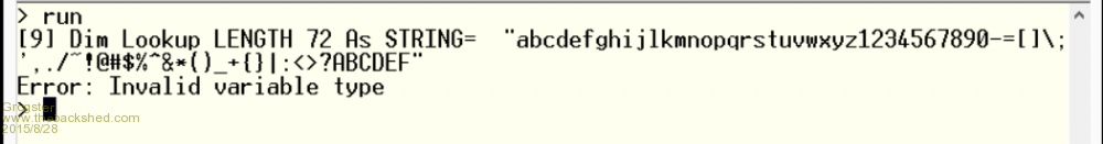 That error suggests that 'P" is negative or zero. DIM Lookup LENGTH 72 AS STRING = "abcdefghijlkmnopqrstuvwxyz1234567890-=[]\;',./~!@#$%^&*()_+{}|:<>?ABCDEF"