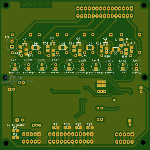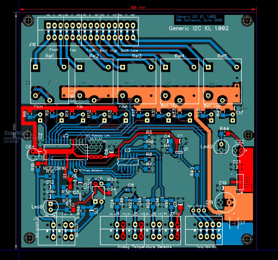Have a PCB layout for the I2C IO board, just managed to fit on a 100x100, the rear has the Leds and opto display that pokes through the front panel.