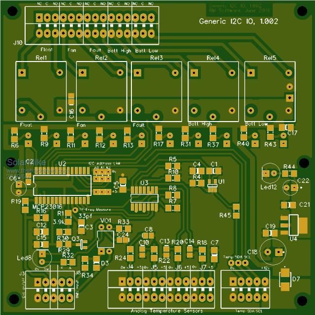 The LCD display can also mount on this pcb; if I use one of those cheap 4 line 20 char ones with the I2C back pack, then it can share the same SDA\SLC bus. Noted that they all seem to use an 8bit expander chip, which means all LCD data has to be sent twice as the LCD operates in 4bit mode... really slow.