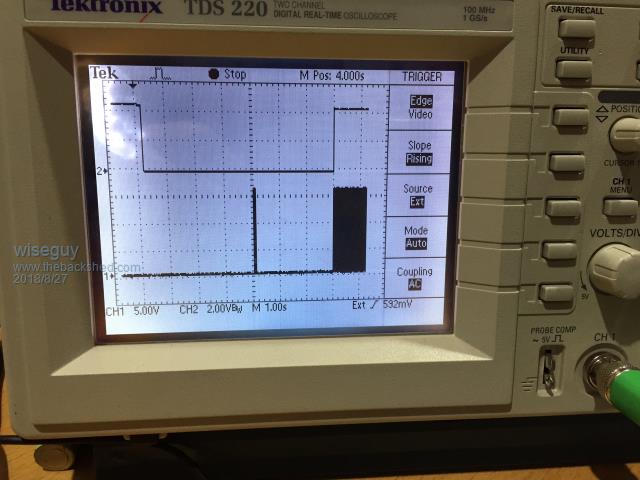 I decided to post some pictures of pin 6 behaviour. First pic is jig setup ![]() Next pic is overload then pin 6 top trace grounded then output pulses bottom trace (middle of screen) appear (uninvited) a few seconds later, then re-enable pin 6 Finally 2 weird streched pulses in the middle of a pwm train shortly after power up - I have not been able to duplicate again as yet. If at first you dont succeed, I suggest you avoid sky diving.... Cheers Mike |