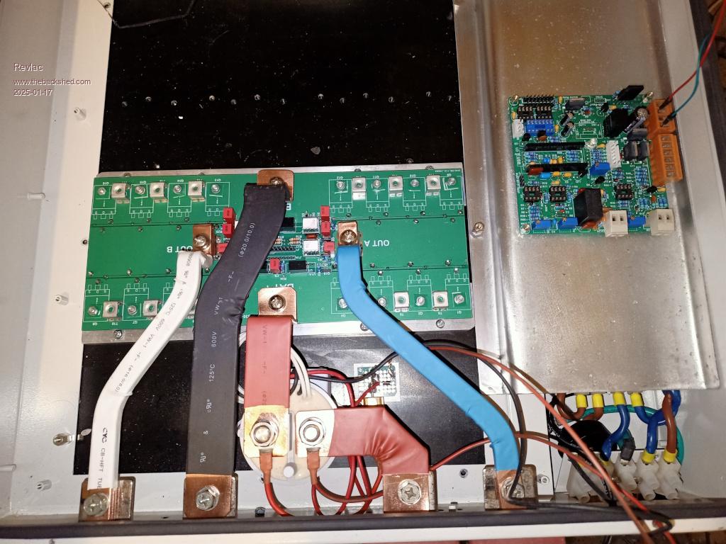 FYI, I carried out a lot of testing with cap values, I found a total of 10,000uf on each cap board (20,000uf total) was around the sweet spot with respect to Inverter stability, adding more capacitance made very little difference past that value to noise, waveform quality and harmonic output.