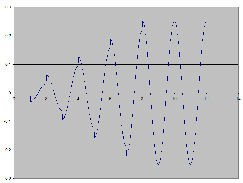 I restart and get a grunt as it appears to achieve normal amplitude, even though I cant see any visible overshoot or distortion occurring. I'm still hunting for the elusive difference between the two cases - it must be very subtle, except for what the ears hear.