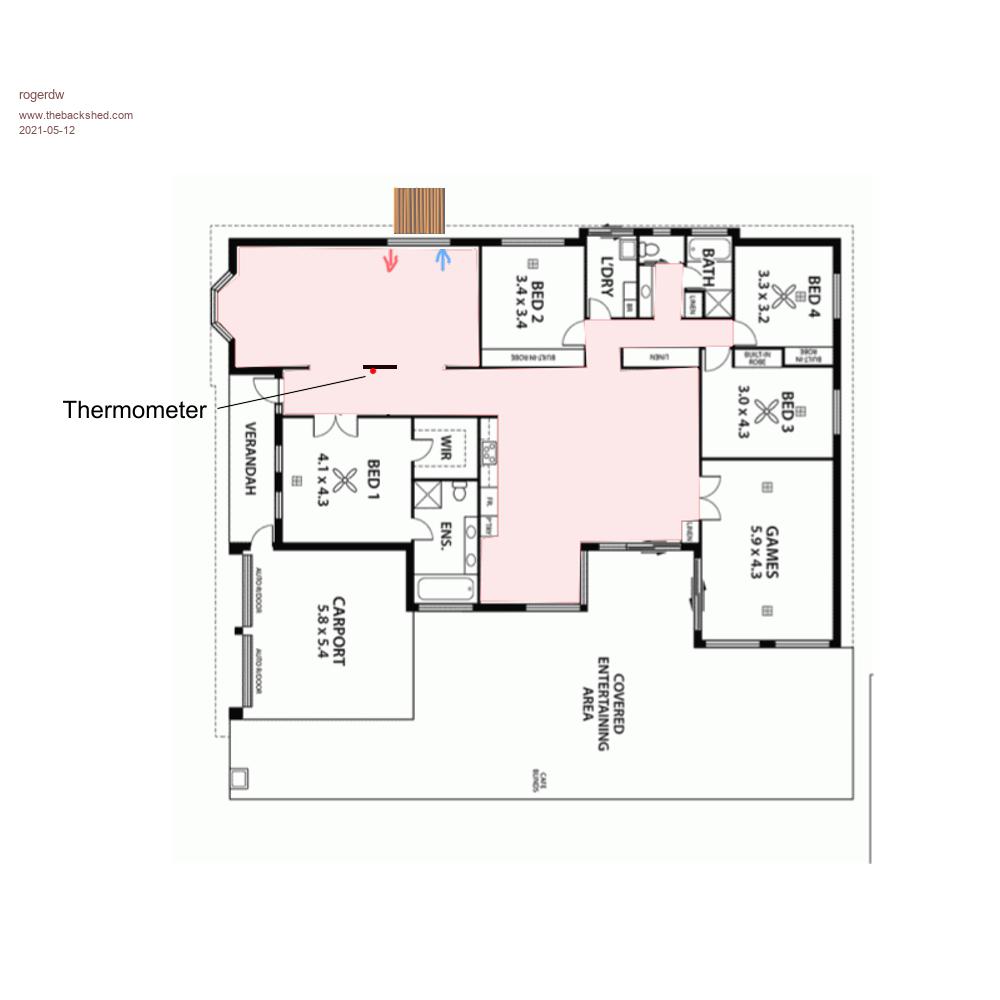 If you see the shaded section ... that is all open to the lounge room and we can't close it off. And today, even the main bedroom was open, so there was a lot of space soaking up all that heat.